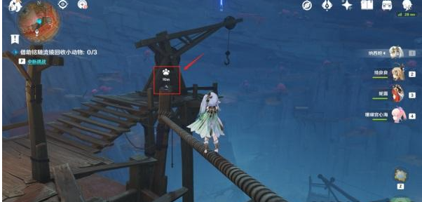 6.蓝翎鹭位置如下,在运矿缆车上,靠近蓝翎鹭后点回收即可。