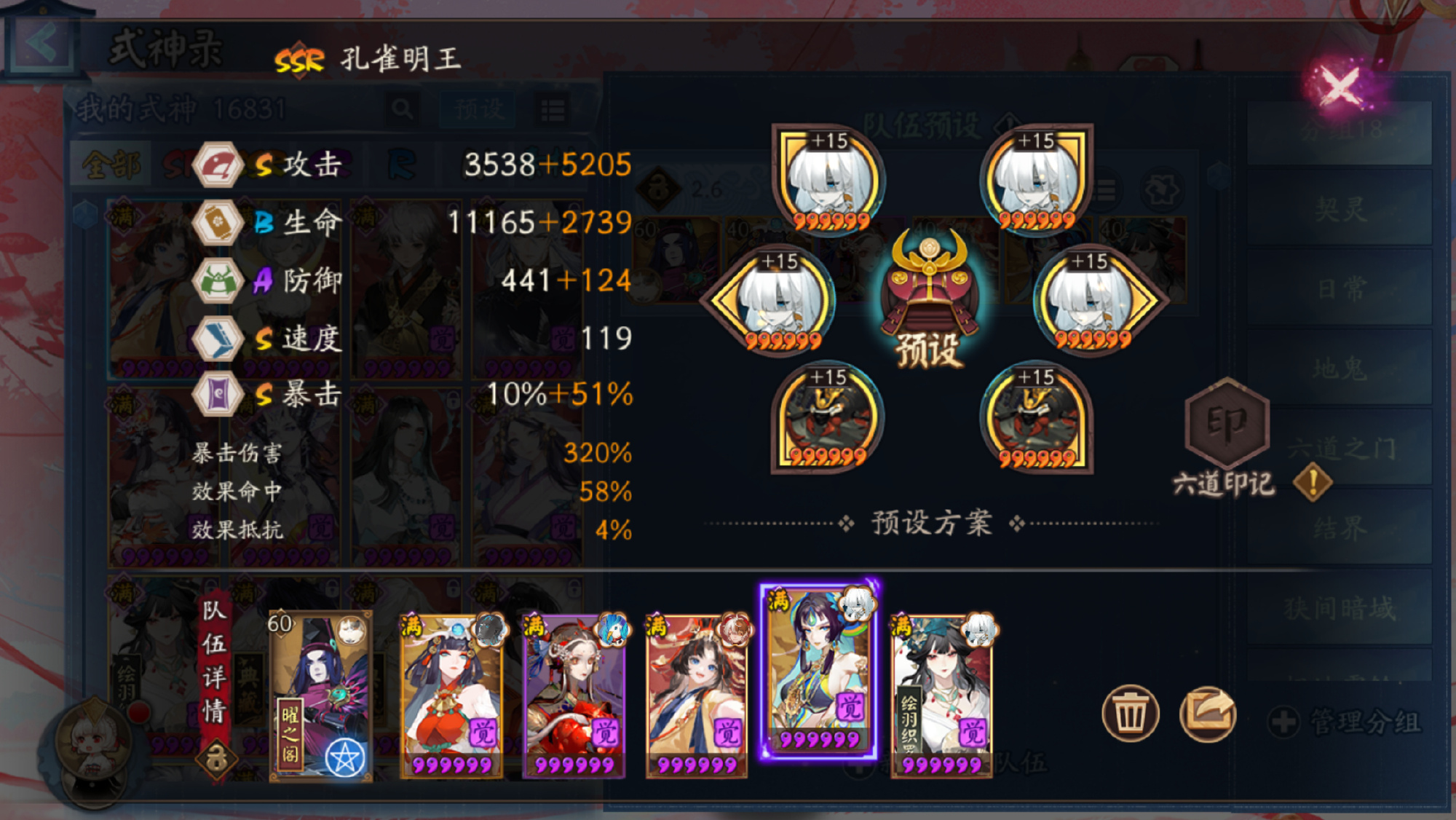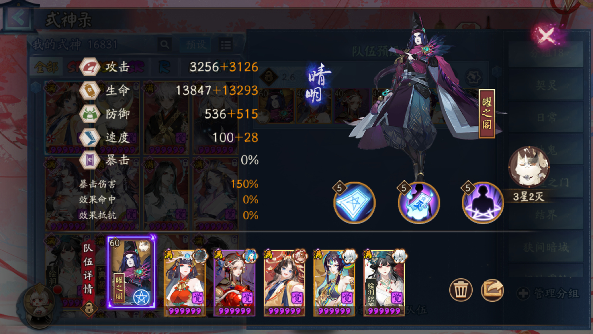 三速晴明,星灭,契灵带镇墓兽(3星3灭最好),优先级灭>星,因为没3灭的,所以带的3星2灭