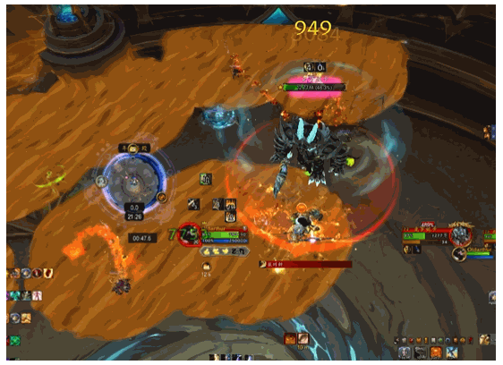 Boss会按时间顺序依次刷新3个大圈,每个大圈炸完后会360度溅射一轮波,需要站缝隙躲开,然后在这个大圈中心位置刷新一个小圈,需要附近没有被点圈的选手进去吃掉。技能顺序为大圈1+大圈2同时刷新,大圈1在Boss模型旁边先炸,大圈2点名在队里除坦克之外的任意一名队友身上,大圈1先炸,出波,出小圈,近战或者坦克进去吃掉这个小圈,此时Boss点名出大圈3。大圈2落地炸,出波,出小圈,谁被点的大圈2谁自己进去吃掉这个小圈。大圈3落地炸,出波,出小圈,谁被点明大圈3谁自己去吃这个小圈。