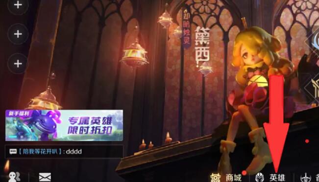 1、首先进入游戏的主界面点击下面的【英雄】。