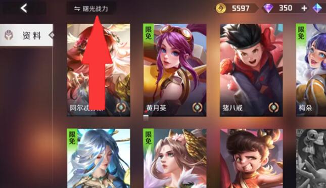 2、然后可以在英雄界面找到左上角的【曙光战力】。