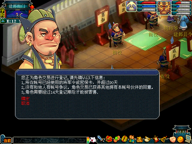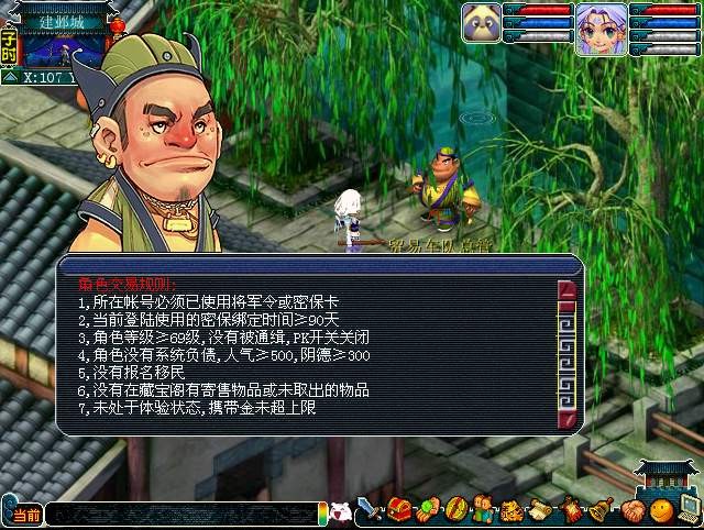 4) 携带金钱未超上限,没有系统负债,没有在藏宝阁有寄售物品或未取出的物品;