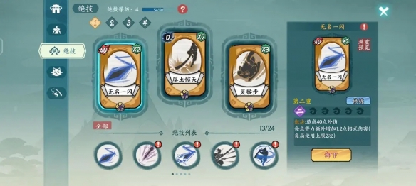 绝技升级不能重置,所以也说一下,厚土惊天和灵猴可以放心升级,这两个很有用,剩下一个看自己流派自行斟酌。