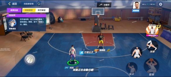 5、三技能——接球速投:简单的接球投篮技能,天赋中可以解锁假投接侧撤步三分,个人感觉较为一般,仅建议大空位下直接当作接球投篮技能使用。