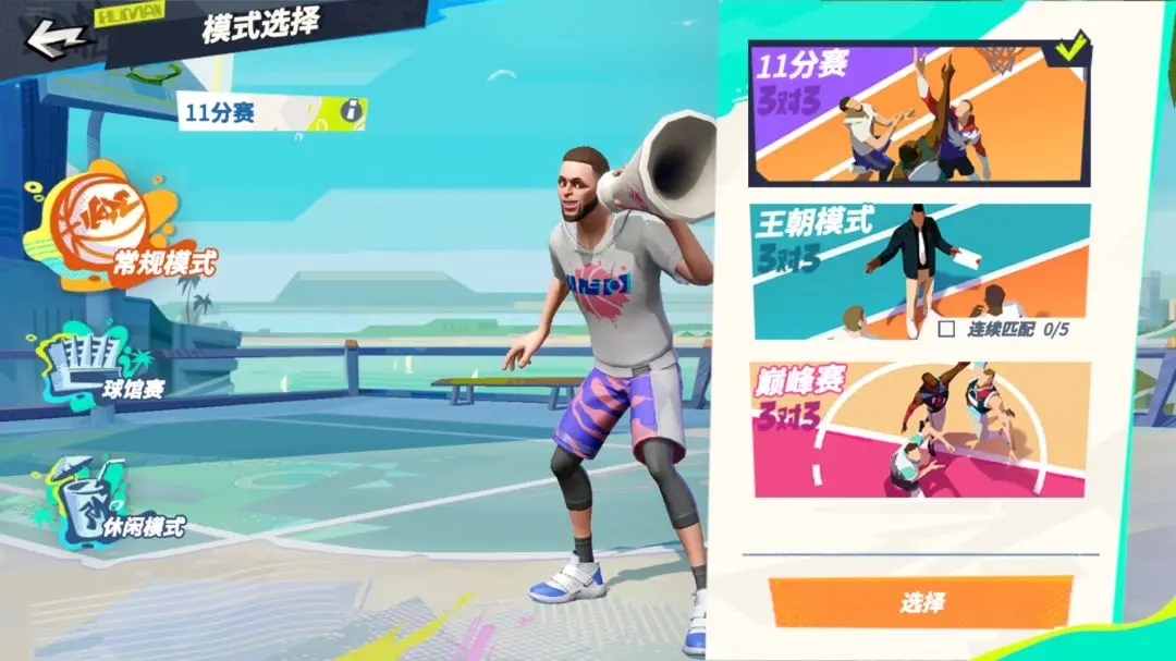 目前自定义房间中除了常规的11分赛、经典3V3、巅峰赛、王朝模式等,还有三种特殊模式分别是结对作战(2v2)、单人斗牛以及篮板房。