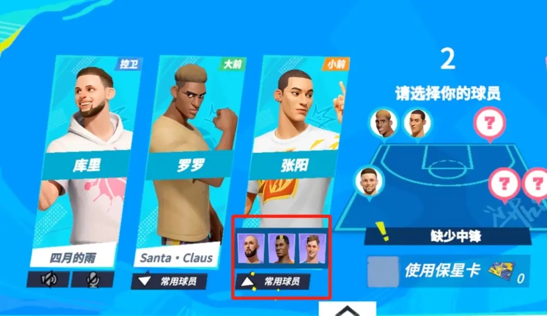 1、选择球员时与队友多开麦沟通巅峰赛需要在匹配成功后才能选择球员,考虑到可能会匹配到喜欢打同类位置的球员,各位巨星可以开麦沟通,或者通过查看对方的常用球员,来更改自己选择的位置。