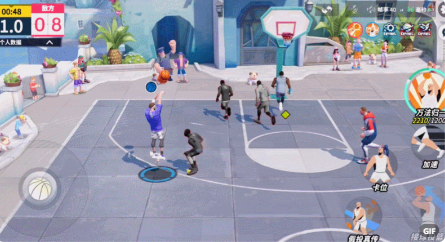 5、分卫实操展示分卫突破上篮推动方向键配合突破技能晃过对手拉开空位,靠近篮筐上篮得分。