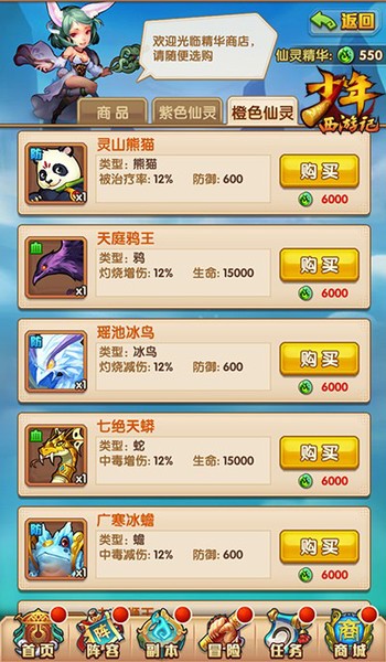 在《少年西游记》新版的仙灵系统中,加入了【仙灵副本】的玩法。在副本中会出现各种品质的仙灵,少年们只需将它击败,便可获得与之相同的仙灵。【仙灵副本】还提供了刷新功能,刷出橙色仙灵关卡时千万不可错过机会,抓住它,让它成为你的守护神吧!
