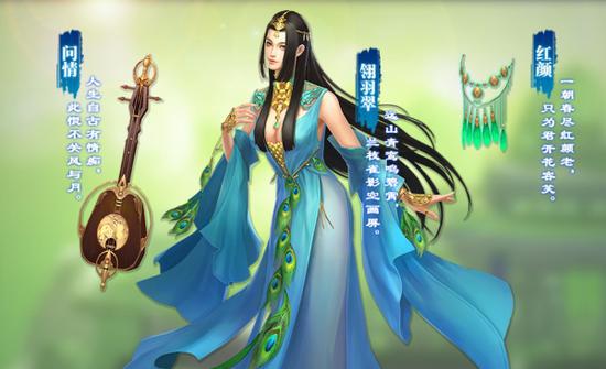 礼包包含:时装[翎羽翠]*1、背饰[问情]*1、脸饰[红颜]*1