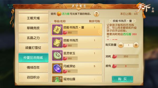 大家如此疯狂种瓜偷瓜到底为啥呢?当然是有超级奖励!西瓜瓣可以在仲夏狂欢商场兑换技能书残页、圣灵软玉等珍稀道具呦!还等什么,快来天下做个真正的吃瓜少年!