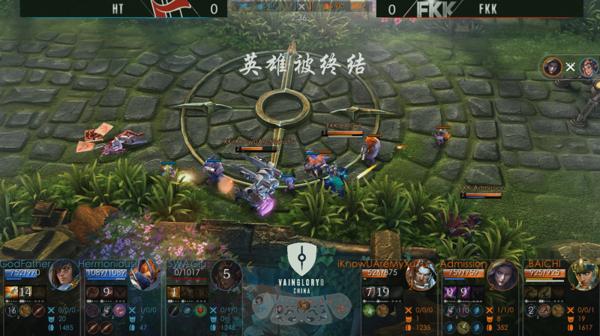 6分30秒,双方展开了第一波正式的团战,大嘴的勇猛冲突一口咬住了莱姆,并且带回自家塔下,让莱姆死在炮塔的轰炸之下。HT顺势拿下了金矿,这时候HT的经济已经领先了FKK将近2000金币。
