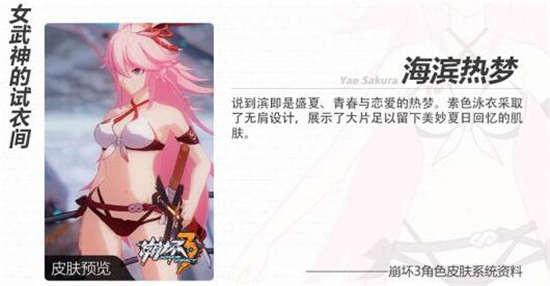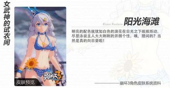 阳光、海浪、沙滩,还有少女……舰长有没有感受到一股夏天的气息呢~为了迎接盛夏的到来,《崩坏3》为所有女武神量身定制的泳装换装已经全部准备完毕啦!泳装系列是《崩坏3》首次推出的全角色通用换装,也就是说,每个女武神的不同角色都可以试穿自己的泳装哦~现在舰长只要积极参与休伯利安夏日祭活动,就可以免费获得芽衣泳装‘蔚澜之海’,其他大量女武神的泳装也将开放免费获取途径,舰长可千万不要错过哦~