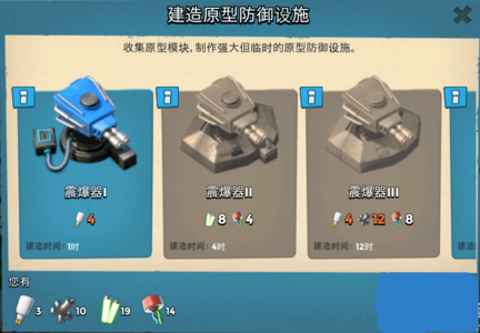 3、原型组合防御设施生产出来之后,就可以在阵型中摆放,也可以铲掉。可以摆放的数量上限,与武器实验室的等级有关。