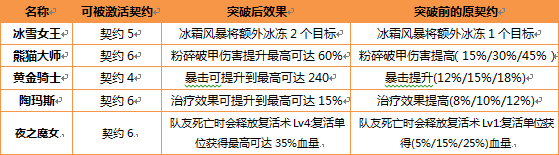 注意:宠物契约突破后的属性提升是在当前上阵的同类宠物特定契约等级基础上提升一个等级,示例:当宠物图鉴中的陶马斯契约“大治疗师”突破后,此时上阵的宠物陶马斯契约“大治疗师”如为蓝色契约,将会提升到紫色,如为金色,将会提升到红色最高级契约 。