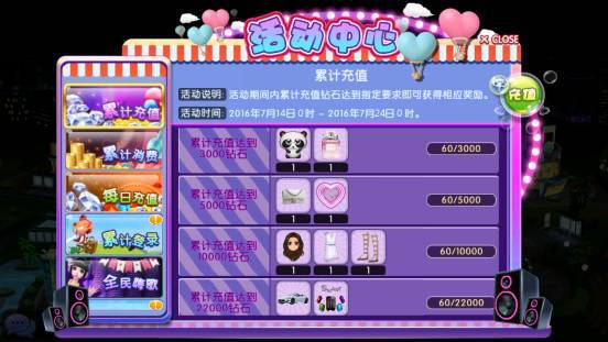 活动期间,凡累计消费达到一定数额,即可获得对应礼包奖励。累计消费5000钻石更有“韩范新潮”(男)“迷情伊人”(女)套装相送!