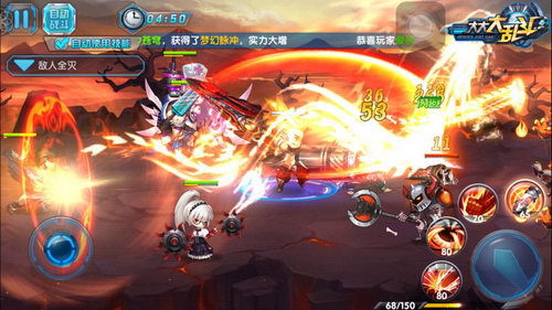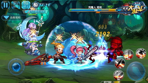 《大大大乱斗》召唤数十位历史名将穿越千年、拯救地球。海量经典名著角色撞破次元壁,重现未来世界,盖世英雄携独门绝技参演《大大大乱斗》年度大戏。国民女将花木兰,巾帼英雄大招威力震撼,不仅对敌人造成物理重击,还为自己套上蓝色生命护盾,抗怪战BOSS,这一次全看她的了。要说战斗最酷炫的,还属为国为民的乔帮主,一记降龙十八掌AOE大招,手中立刻幻化数条金色长龙,敌人不仅避无可避,还会因此短时眩晕,乔帮主这招好样的!