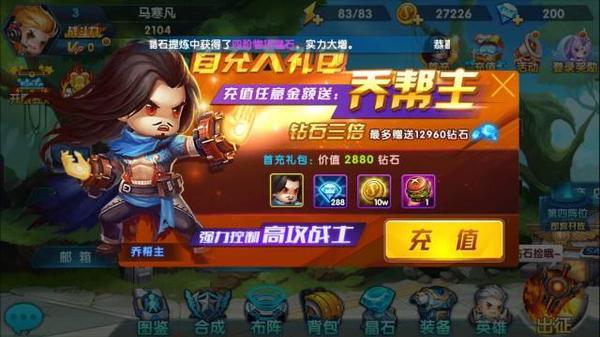 在《大大大乱斗》中,游戏一共为玩家准备了两种消费货币,分别是金币和钻石,这两种货币获取途径不同、价值不同、消费方式更是不同。首先为大家介绍一下金币的相关内容,金币在游戏中的价值较低,但是使用广泛。玩家登陆游戏后会有一段自动教学环节指引着玩家熟悉整个游戏玩法流程,完成这个环节便有三万左右的金币可以领取。金币在游戏中的使用途径涉及各个方面,整个培养系统均离不开金币的辅助,少了金币玩家只能是止步不前。比如英雄的觉醒、升星、进阶以及装备的升级和技能的强化都要使用金币才能完成,这些作用均与角色战斗力有着直接的影响,由此可知金币的重要性。小编还是建议大家在游戏前期一定要尽可能多的进行副本挑战,只要顺利通关就有金币奖励,对玩家颇有益处。