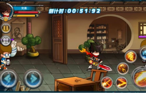 典型如私塾风三味书屋,木制长凳承载玩家的学生时代青春记忆,醒目的“早”字书写青涩年华。只不过《极战纪》发扬恶搞精神,课桌上刻上的不仅有自省的“早”字,还有发泄不满的“草”。