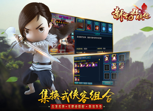 在《新古龙群侠传》中,所有侠客都拥有“天地人”三元属性,通过普攻和技能触发“天—地—人—天”的三元追击设定,能够引起多侠客间的战斗连招,让战斗过程更具动作性和打击感。高连击还可释放不同侠客间激活的合体绝杀技能,对敌方造成大量伤害。天地人追击战斗在提升策略战斗的同时,也将带给你动作级战斗的全新画面体验。为迎接首发,9月8日起登陆游戏,第二天即送上官飞燕,小黑游戏天将免费获得名侠沈浪。