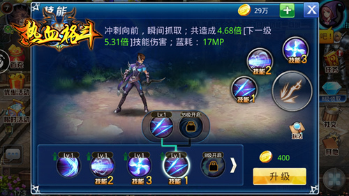 《热血格斗》中设置了魔剑士、血影刺客、枪舞者三大职业,每个职业在技能上都提供了不同的分支技能可供自由选择,实现了3个职业27种不同玩法的特点。战 斗中,玩家可携带三个技能上场,这就要求玩家根据不同的关卡特性使用不同的技能组合,同时带给你不一样的通关感受!
