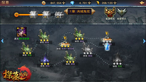 世界观架构“中国悬疑大师”蔡骏与制作人员花费数月时间设计的,超过500个地宫场景已加入“探墓副本”中!“探墓”作为《探墓风云》中的主要玩法之一,在游戏前期,参与“探墓”会产出大量的经验奖励,让玩家快速升级。探墓副本分为普通模式和炼狱模式,难度越大,奖励也会越大,喜欢挑战的摸金校尉们,一定不能错过。