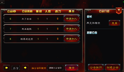 点击进入军团页面,可以看到已经存在的军团列表,点击右下角的“创建军团”按钮进行军团创建。