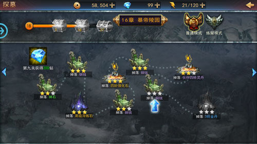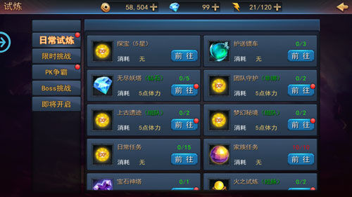 在《探墓风云》游戏右上角的“活动”按钮中,我们可以发现几十项挑战副本,有经验本、铜钱本、钻石本、组队副本等等,这所有的挑战副本都是我们每日的必修课!在这里刷图我们可以获得各类资源的最高掉落数目,根据阵容提升所需资源来进行对应副本的挑战,是你成为高玩的基本技能。(提示:商城中有1.5倍经验卡可买,不要错过哦)