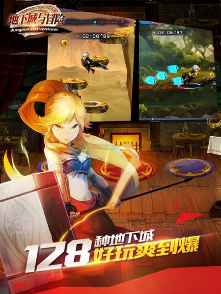 地下城作为横版手游的主要玩法,《地下城与冒险》在地下城的设计上可谓用心良苦,无论是在地下城的风格还是玩法上都花了大力气。多达128种地下城关卡设计,可以让小伙伴们在里面自由探索,有别与以往打怪为主的刷图体验,由于《地下城与冒险》中可以跳跃,所以在玩法上有了更多创新,护送小萝莉,打大鲤鱼,限时副本,挑战副本等;与场景充分趣味互动,跳跃躲闪,享受熟悉的横版手游乐趣。