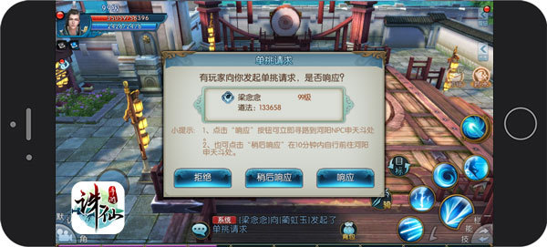 《诛仙手游》中,你随时都可以单挑你想挑战的人。