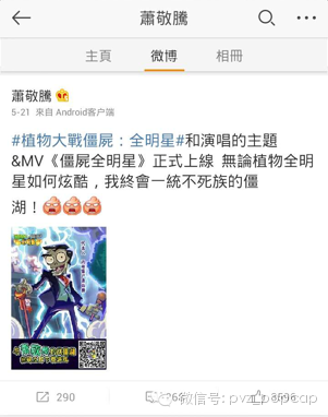 萧敬腾的倾情加盟,国内各大平台的鼎力支持,将会有更多的脑子们产生,加入到这款游戏的对战中,一场“全民植物大战僵尸”的风潮即将掀起!“雨神僵尸”萧敬腾发表博文表示“作为僵尸BOSS,终会一统不死族的僵湖!”看到这么萌萌哒的“雨神”僵尸,粉丝们也纷纷献上热吻和掌声,不仅要立马下载《植物大战僵尸:全明星》,还要单曲循环!