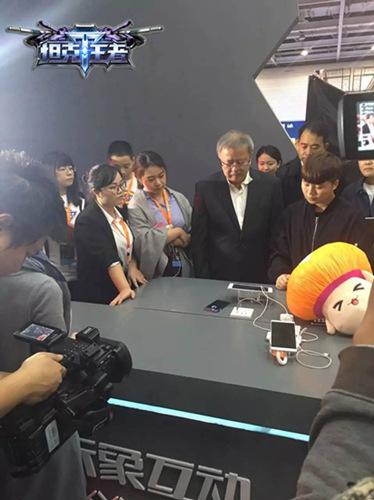 作为嘉年华上唯一品类的坦克游戏,天象互动的巨型"坦克"展台在嘉年华上大放异彩,吸引了众多观众和粉丝驻足试玩体验。《坦克王者》受到了湖南省政协副主席欧阳斌的关注,他在天象互动的展台饶有兴趣地试玩游戏,还愉快地接受了游戏周边。对于天象互动在手游行业取得的成绩,欧阳副主席表示十分赞赏。