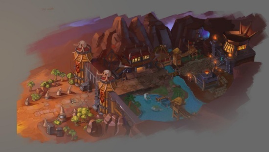 粗旷豪迈的巨锤要塞,风格简陋却蕴含着一股舍我其谁的大气。舍去华丽的装饰,兽人风格如此标准,非常符合兽人们的理念。