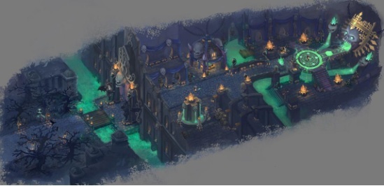 阴森诡秘的地下坑道,无论是随处可怖的骷髅头还是枯萎的死树都在无声的警告着来访者。而森绿惨淡的河流和不为人知的死灵法术,足以吓退大部分来犯者。