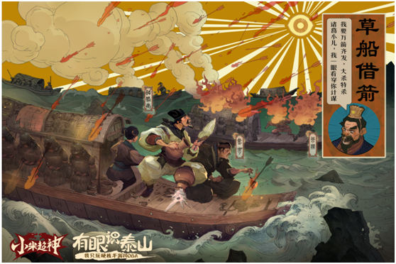 今日小米超神也是首次对外发布概念海报,该海报的风格不禁让人联想起儿时的连环画,而图中所示的内容也正是我们小时候比较熟悉的三国故事——草船借箭,但乍一看却有些忍俊不禁。