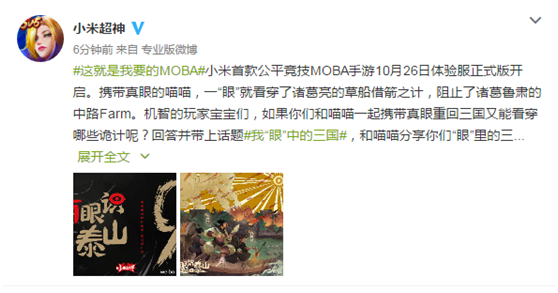 近日,《小米超神》官方微博发布了首张概念海报,并且公布了体验服正式版的启动时间。