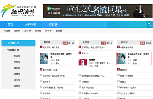 腾讯文学畅销榜、推荐榜前三