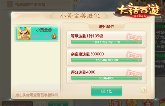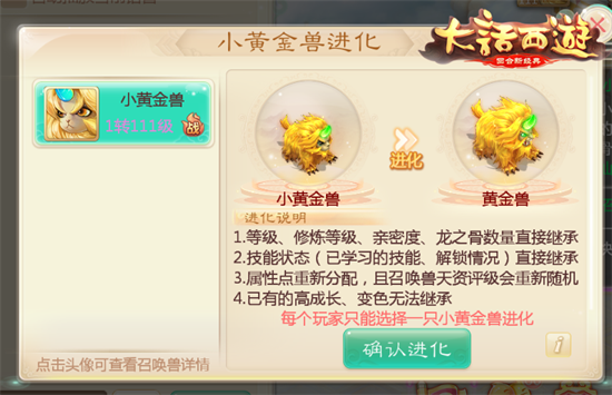 在时间服中,官方还将推出玩家宠物升级福利。备受玩家喜爱的新手宠物“小黄金兽”通过不断的历练达到一定进化条件(等级、亲密度、评分),将可在游戏内“灵兽仙”处进阶成长为拥有强大的属性、能力的大黄金兽陪伴玩家继续闯荡江湖!