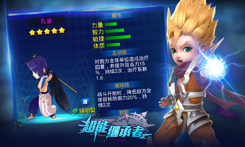 《超能继承者》是由简乐互动倾情打造、暴走漫画力荐的全国首款青春动漫偶像3D手游,游戏以各种经典动漫与影视角色为原型,细腻的日韩动漫风格画面结合轻松的战斗方式,打破次元墙,唤醒玩家青葱岁月中曾日夜相伴的英雄梦。玩家可以召集蜡笔小新、叮当猫、水兵月等各种Q版英雄组成属于自己的华丽梦之队,轻松怀旧剧情配合简单微操,让战斗更加酣畅淋漓!