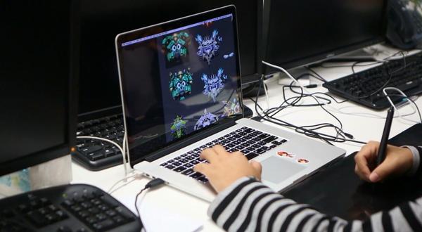 进入大楼,大神选手们瞬间化身小粉丝,直奔《球球大作战》研发人员的座位,迫不及待地要探探这个一直陪伴他们的游戏的秘密!正好工作人员在设计圣衣,设计师向选手们展示了这个游戏中最酷炫的装备的出品过程。以后玩游戏的时候,可以骄傲地说:“我可是知道圣衣的秘密哦!”