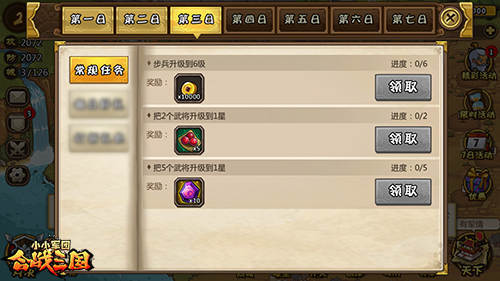 自新服开启后,玩家每日登录完成指定任务均可获得海量游戏道具奖励。武将升级、武将升星、步兵升级……诸多常规任务完成后均可以领取额外奖励。铜钱、材料、培养道具海量发放,助力各位主公征战天下。