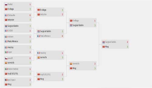 中国选手在此次大赛上的表现格外亮眼。在10月28日的第一轮小组赛中,来自中国的千人锦标赛第一名“hzq8382785”以四胜一负的成绩成功杀入决赛,为中国选手博得头彩;10月29日,从千人锦标赛中杀出的另外两名选手“B village”、“babystar”和邀请选手“鸣圣”也成功突围。至此,中国参赛的6名选手有4名会师决赛。