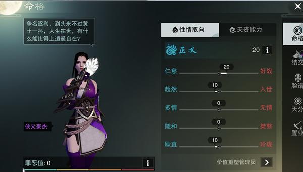 我们重做了命格系统,你们可以更加明显得到对自己江湖性格的反馈,养成命格可以触发奇遇、发放脸谱、解锁天分效果。并且在攻略NPC上,如果少侠的性格与NPC越相投,则更易结交。