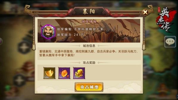 我们要根据战前所提供的有限的情报,来判断敌方可能出现的战力,以及战场的大致环境。如上图“敌军编制:于禁所督精锐七军”。那么熟读《三国演义》的玩家就会立刻想到汉水溢岸,关羽水淹七军拿襄阳。既然用水攻,那么地势势必低洼,既然说到战场低洼,我们就不难推测到敌军肯定在城墙上安排了大量的弓箭手。