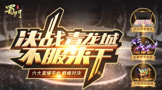 《蜀门手游》百万现金公会赛正式打响!七大直播平台S级主播应战蜀友宣战,斗鱼大司马、YY毕加索、全民轩辕宝宝、YY小少焱、触手Tiny、战旗Mint、熊猫皮小秀决战青龙城不服来干!热血城战风云再起,联盟帮会的角逐如火如荼,《蜀门手游》不删档测试城战将更为激烈,百万现金助阵城战,所有服务器的帮主均可带帮参与,争夺城主之位!在万人城战中夺取各服务器三城之中的青龙城的帮主,即可获得现金大奖及城主限定珍惜道具奖励!
