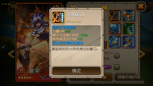 屠芙的觉醒装备:淬火屠刀,进一步加强了屠芙的力量,最大生命值和攻击力,增加了屠芙在战场上的战斗力。