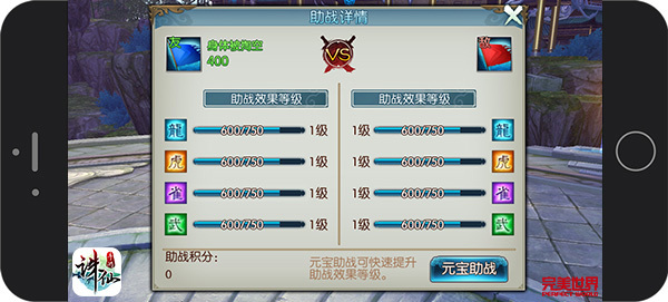 图11:《诛仙手游》跨服PK两队助阵效果提升情况展示