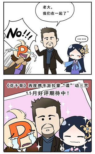 自《花千骨》正版手游对外宣布,与派拉蒙旗下的年度战地爱情大片《间谍同盟》成功取得跨界合作以来,作为曾创下月流水过亿的影游联动标杆,《花千骨》不仅为这次的海外联动开展起同主题的“仙谍同盟”活动,还根据本次全新的海外影游联动合作打造起恶搞漫画。
