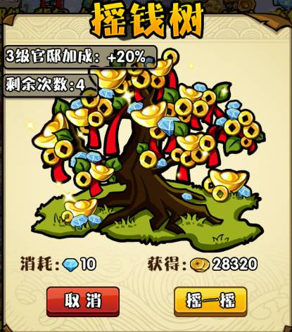 免费获得居民进贡的金币,就是传说中的摇钱树。在居民进贡完,