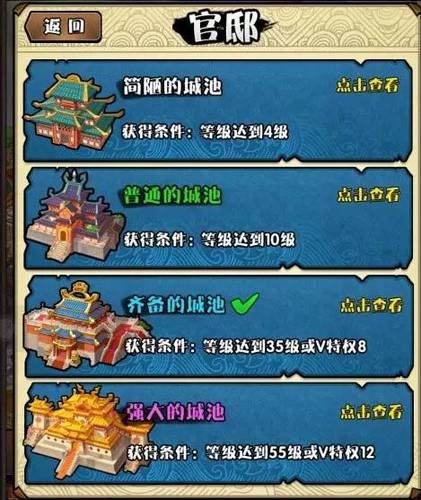 可以升级改造城池的专属区域,当主公到达一定等级后,就可以解锁更高一级的城池特效哦~