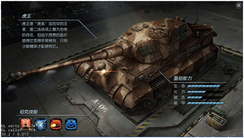 装甲科技:虎王坦克为我方全体单位提供先进的装甲科技,使全体装甲值得到大幅提升。